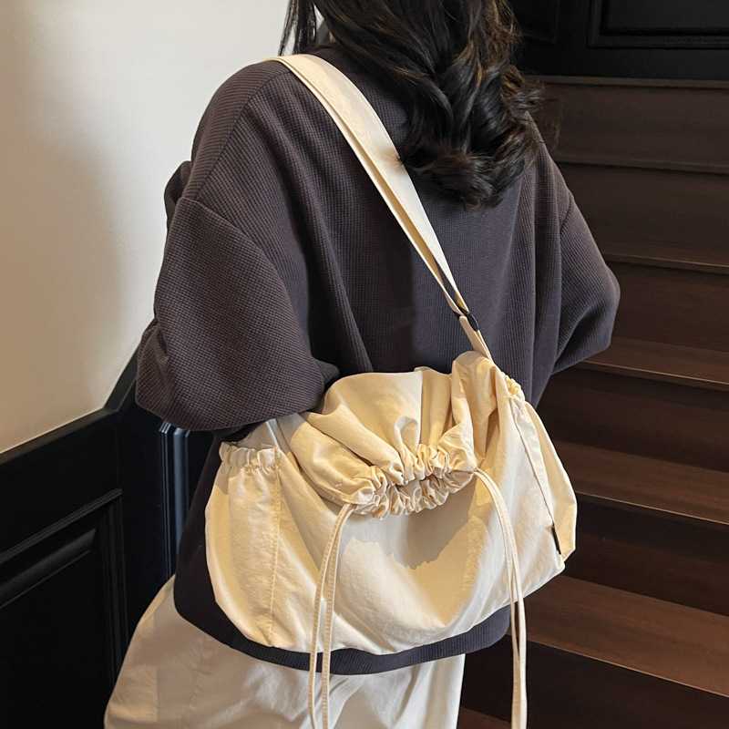 大容量纯色帆布女包简约单肩包休闲出行斜挎包女百搭马卡龙色时尚