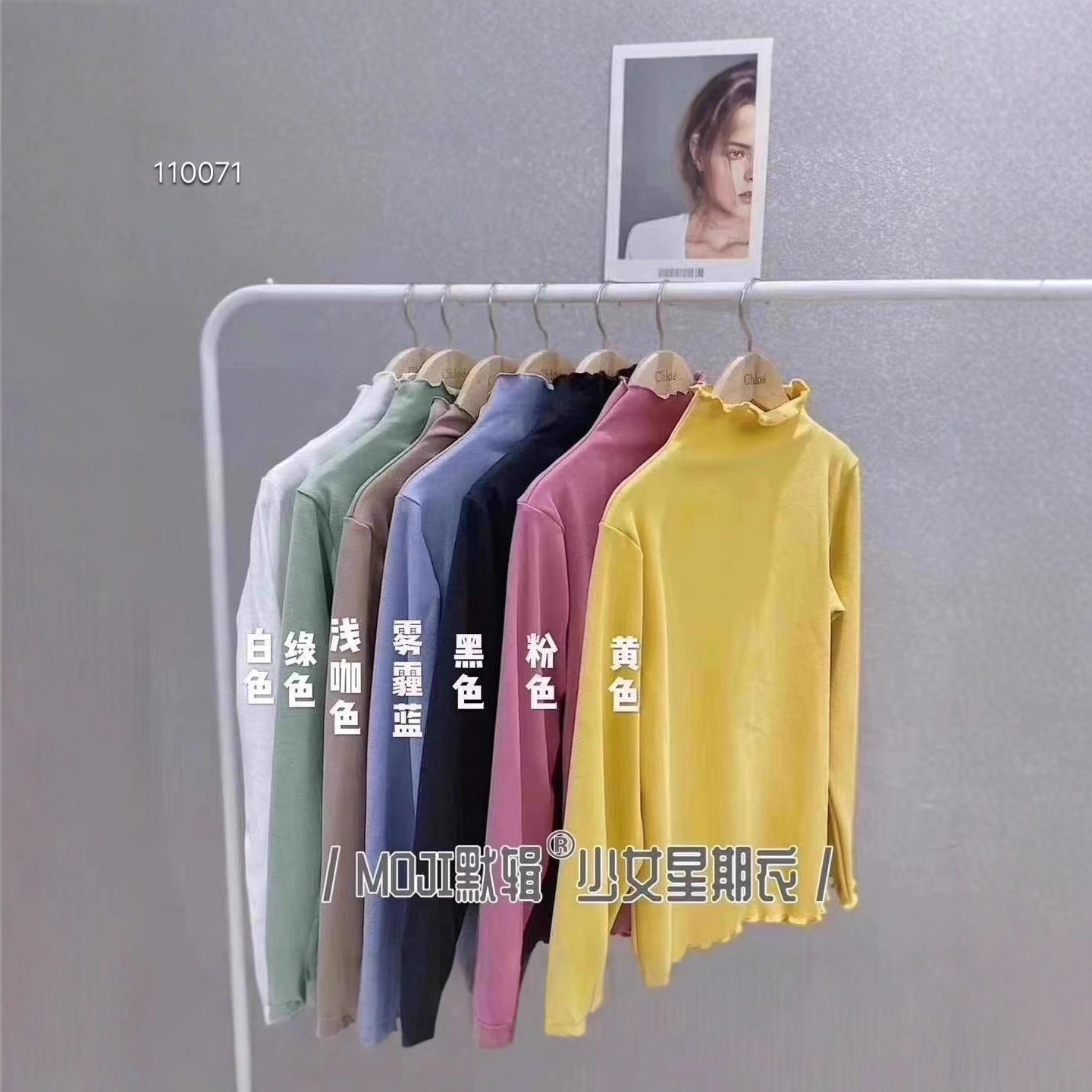 小猫日记简约打底衫女薄款内搭修身木耳边休闲百搭韩版打底衫清仓