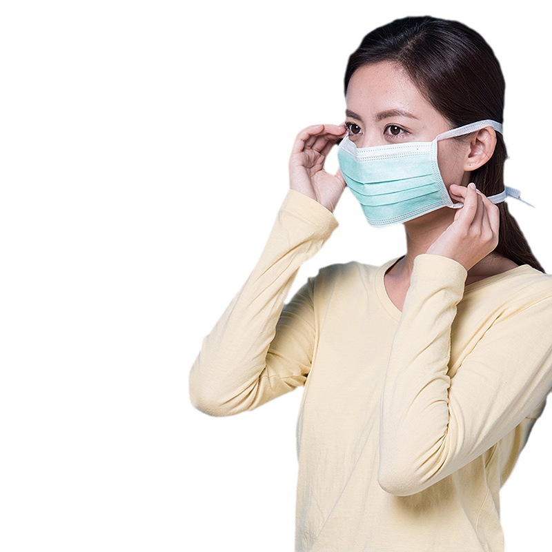 宜昌一次性无纺布绑带口罩三层系带防尘透气蓝色一次性口罩