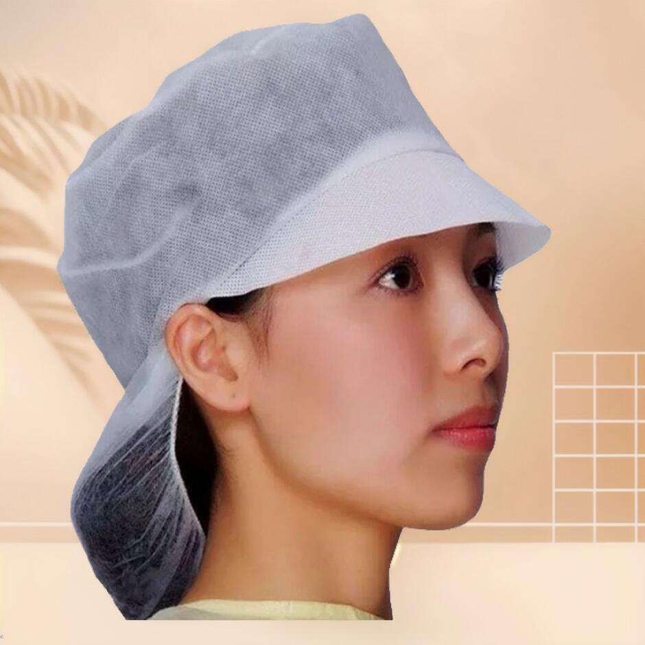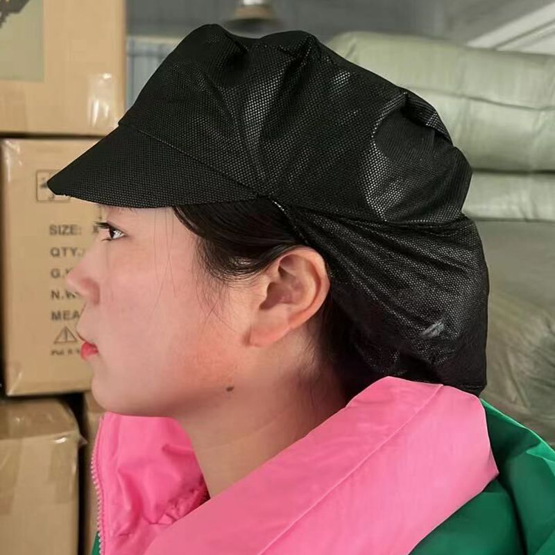 一次性女工帽橡筋无纺布男工帽白色蓝色黑色带兜头套无纺布鸭舌帽