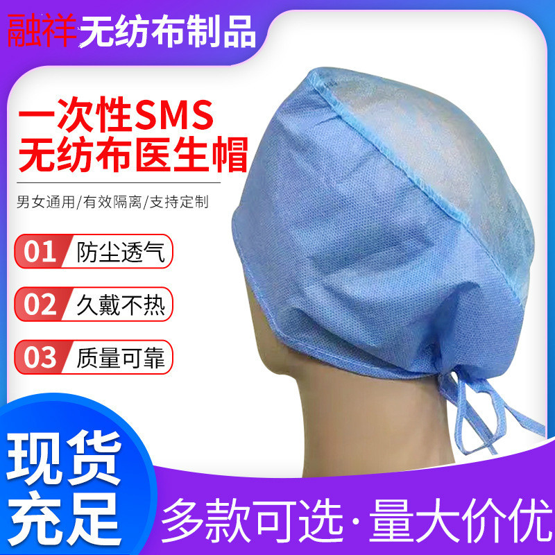 厂家一次性帽子 防尘加厚无纺布帽护士帽 SMS白色蓝色 系带医生帽