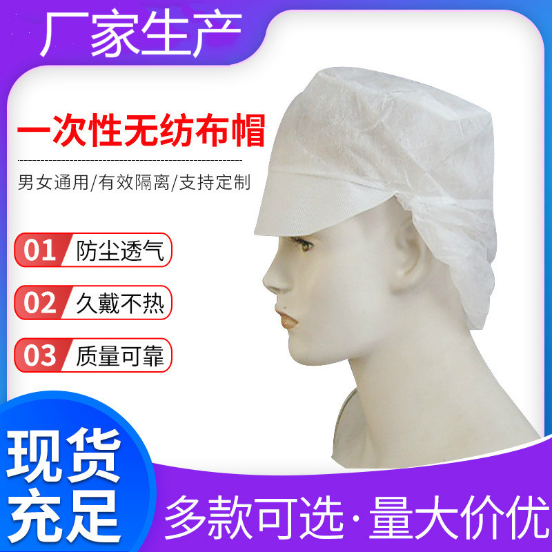 一次性女工帽无纺布帽子车间工厂防尘帽鸭舌帽带发兜头套现货供应