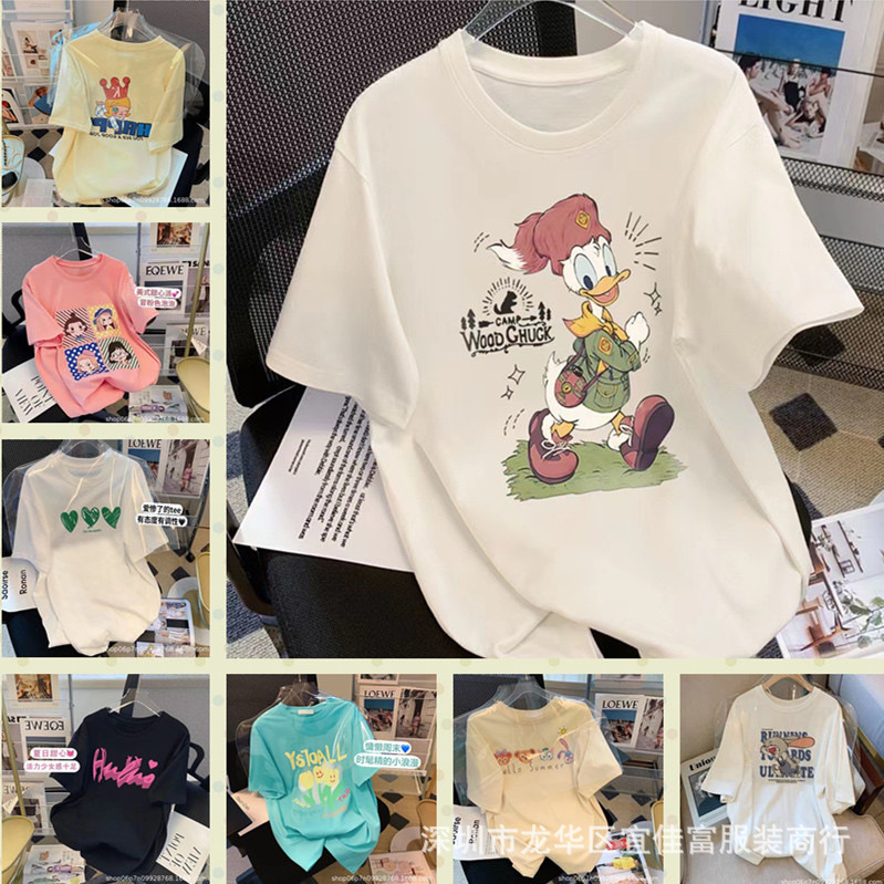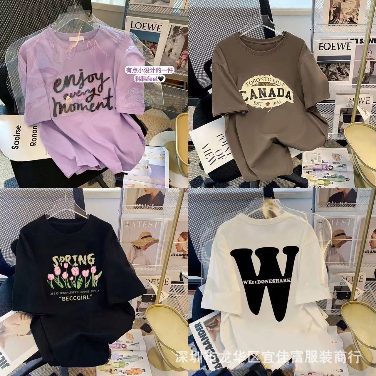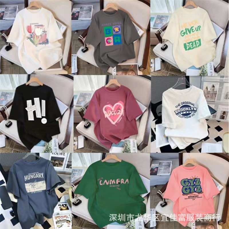 夏季地摊女装短袖t恤 女韩版宽松纯棉体恤上衣打底衫1688批发货源