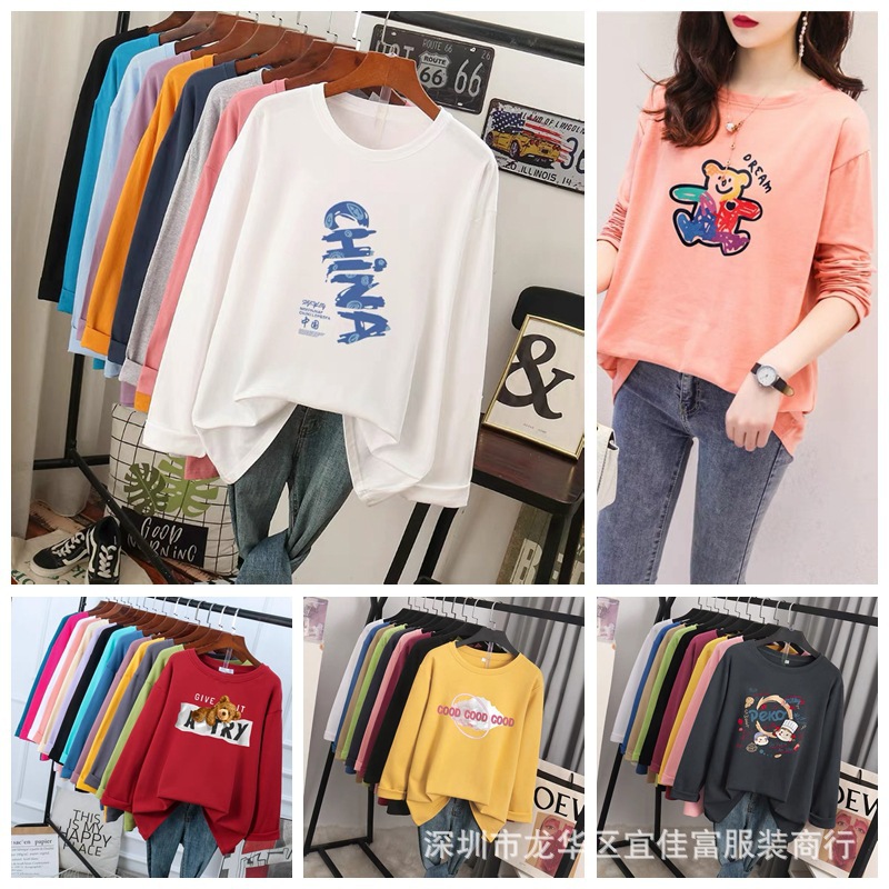 2025新款春季纯棉大码宽松女长袖t恤上衣打底衫地摊衣服服装批发