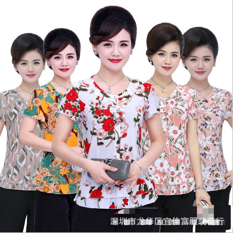 妈妈衫短袖新款库存低价服装 夏季爆款中老年短袖女装地摊货源网