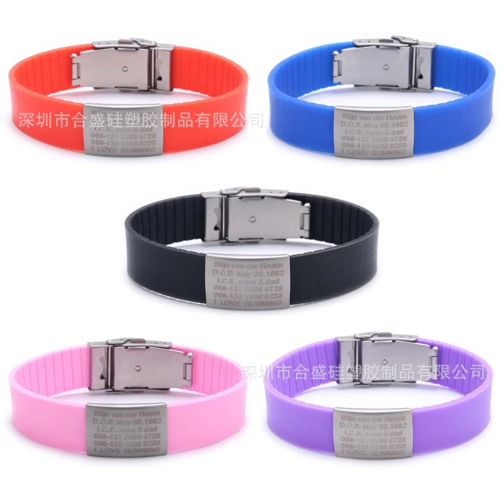 现货双牙扣不锈钢二维码手环金属中扣硅胶手环双牙扣手环五金手环