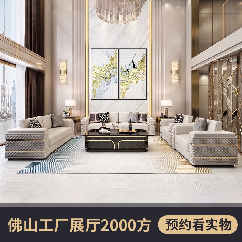 -               现代客厅仿真皮沙发 别墅大平层沙发 大户型组合港式轻奢家具全套