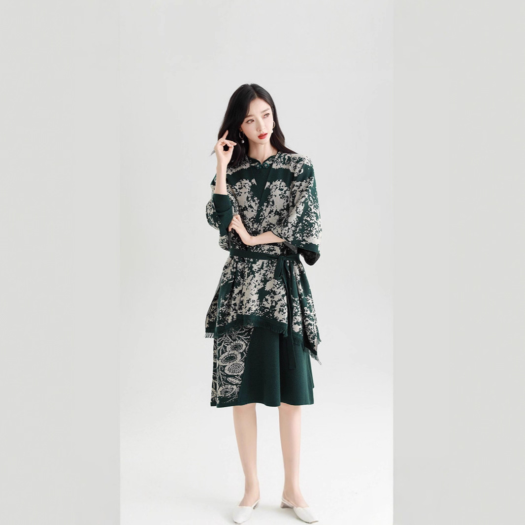 秋冬新款2025大码女装长袖花边纯色不规则针织百搭长连衣裙毛衣女