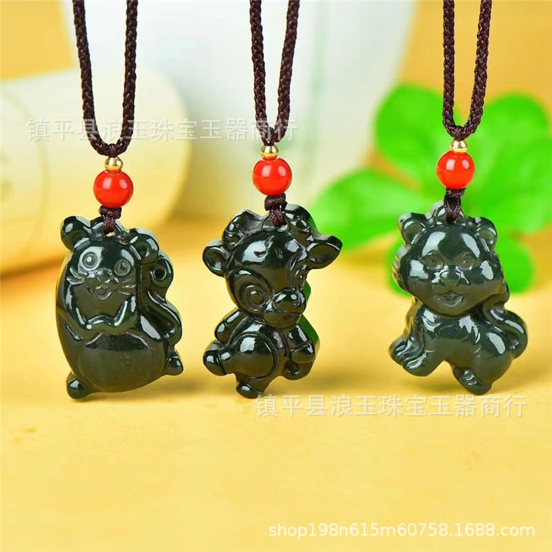 天然玉石新疆和田青玉卡通十二生肖吊坠直播货源