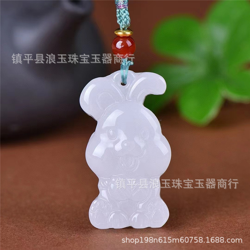 天然玉石新疆金丝玉羊脂白色生肖玉兔吊坠直播货源