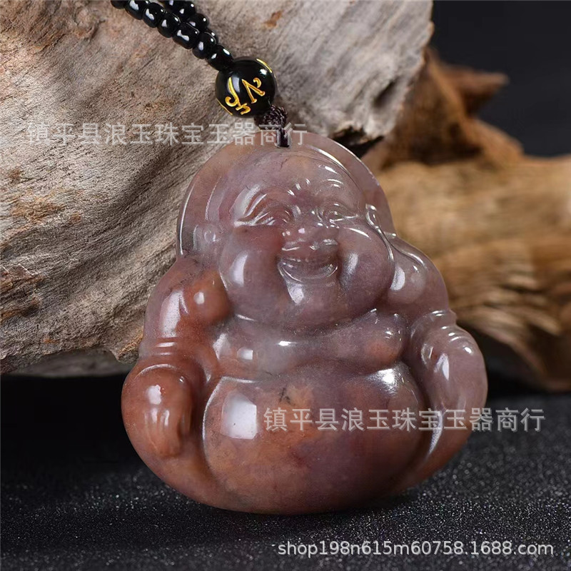 天然玉石新疆金丝玉佘太翠双面雕刻大肚弥勒佛公吊坠紫罗兰大肚佛