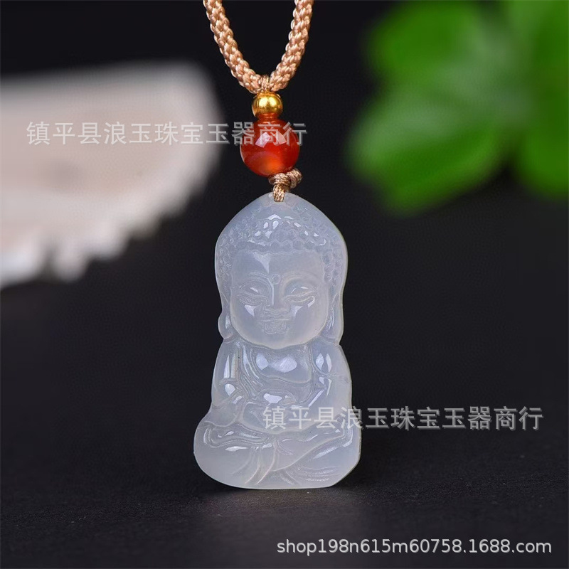 天然玉石高冰玛瑙玉石白月光宝宝佛女款吊坠直播货源