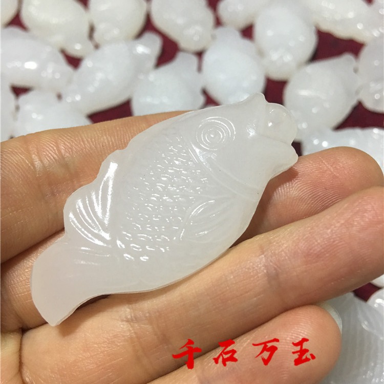 天然玉石阿富汗白玉鲤鱼挂件连年有余吊坠直播货源