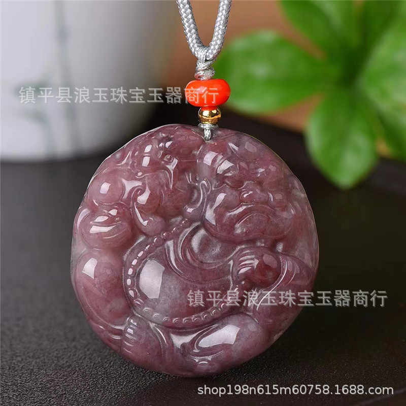 天然玉石新疆金丝玉佘太翠圆形罗汉玉佩紫罗兰男女款挂件直播货源