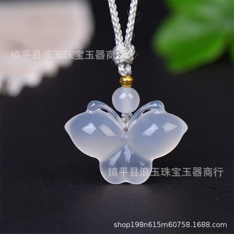 天然玉石高冰玛瑙玉髓白月光蝴蝶吊坠直播货源