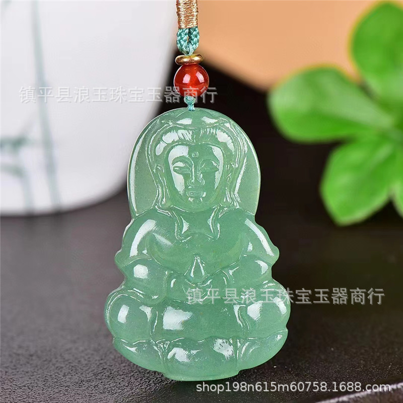 天然玉石新疆金丝玉天山翠观音玉佩双面吊坠直播货源