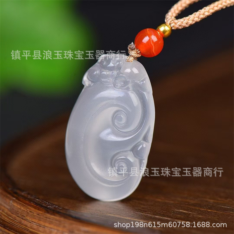 天然玉石白月光高冰玛瑙玉髓如意宝吊坠直播货源