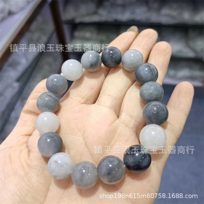 天然玉石新疆金丝玉佘太翠烟灰色水墨丹青圆珠手串散珠配饰