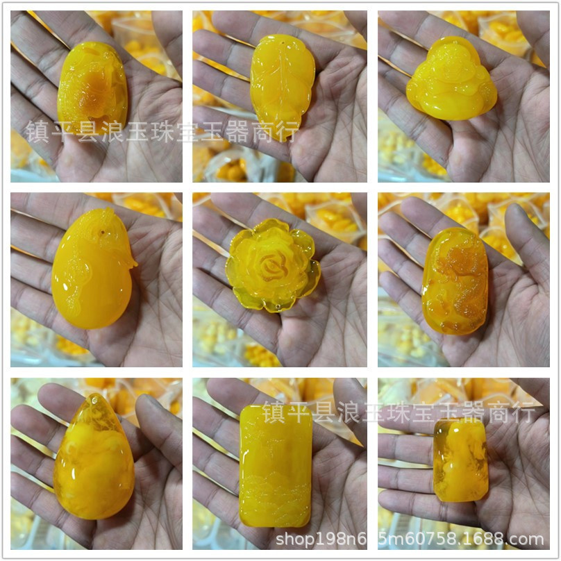 厂家批发二代琥珀蜜蜡荧光浮盐水手把件挂件吊坠直播货源