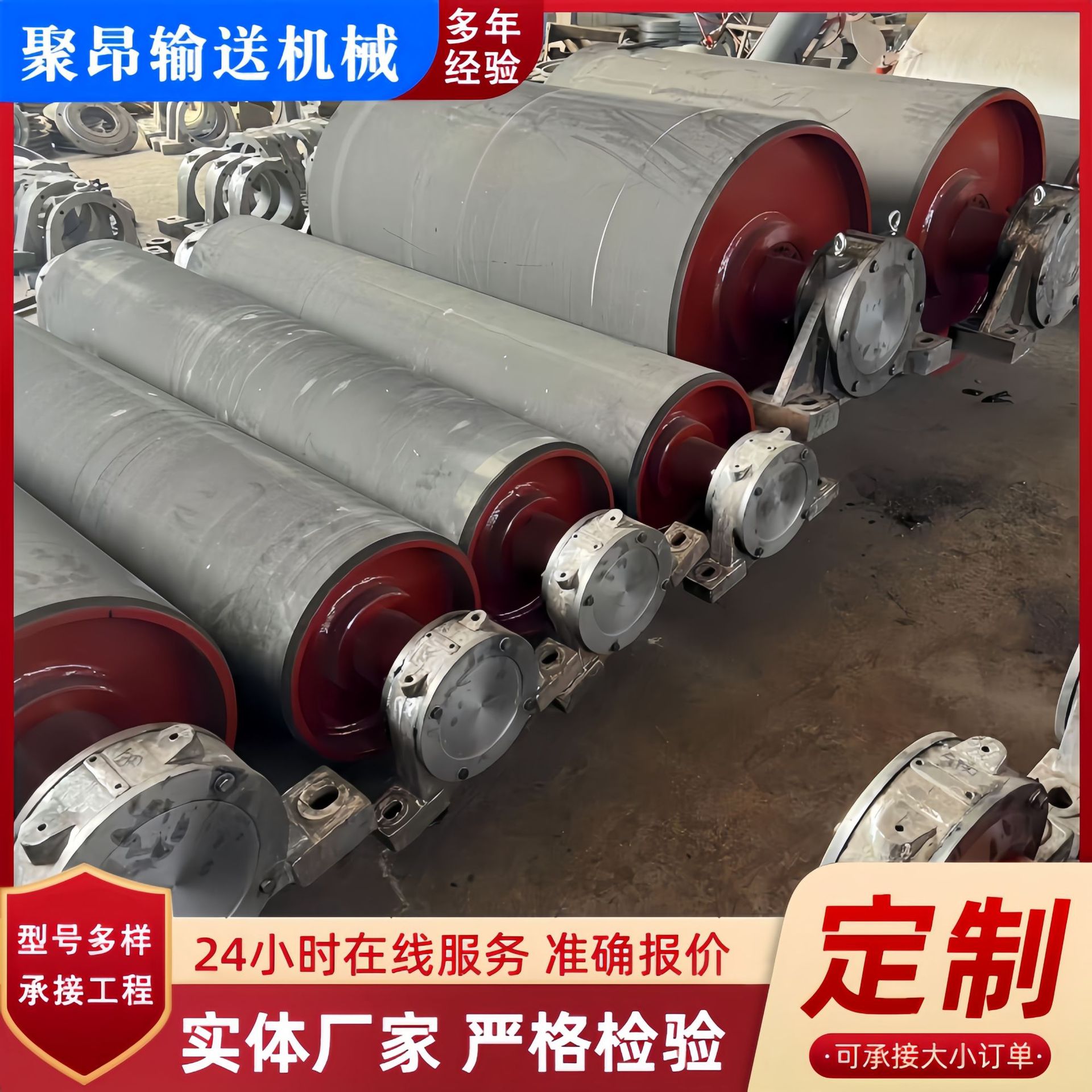 定制输送带主动驱动滚筒主动改向包胶滚筒钢筋柱笼排渣滚筒