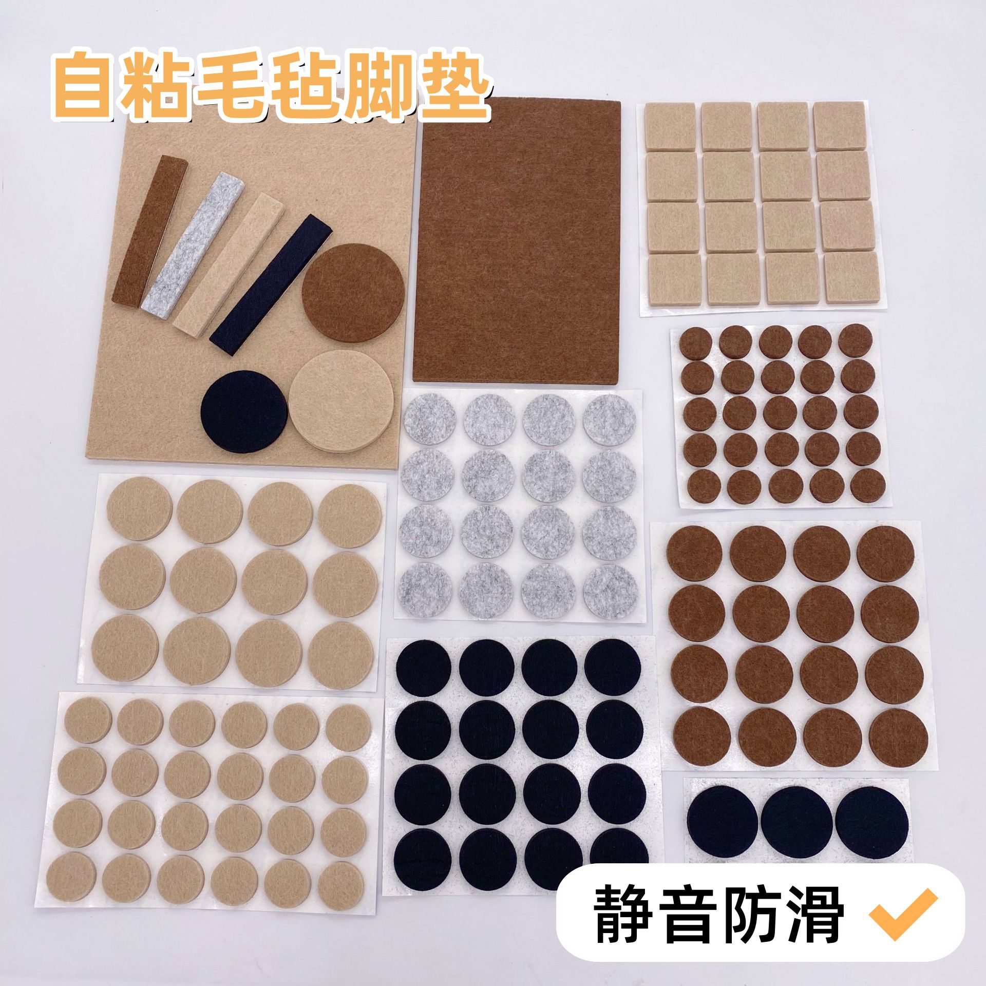 2mm浅灰色毛毡桌椅脚垫圆形黑色家具防滑保护垫片耐磨胶带背胶
