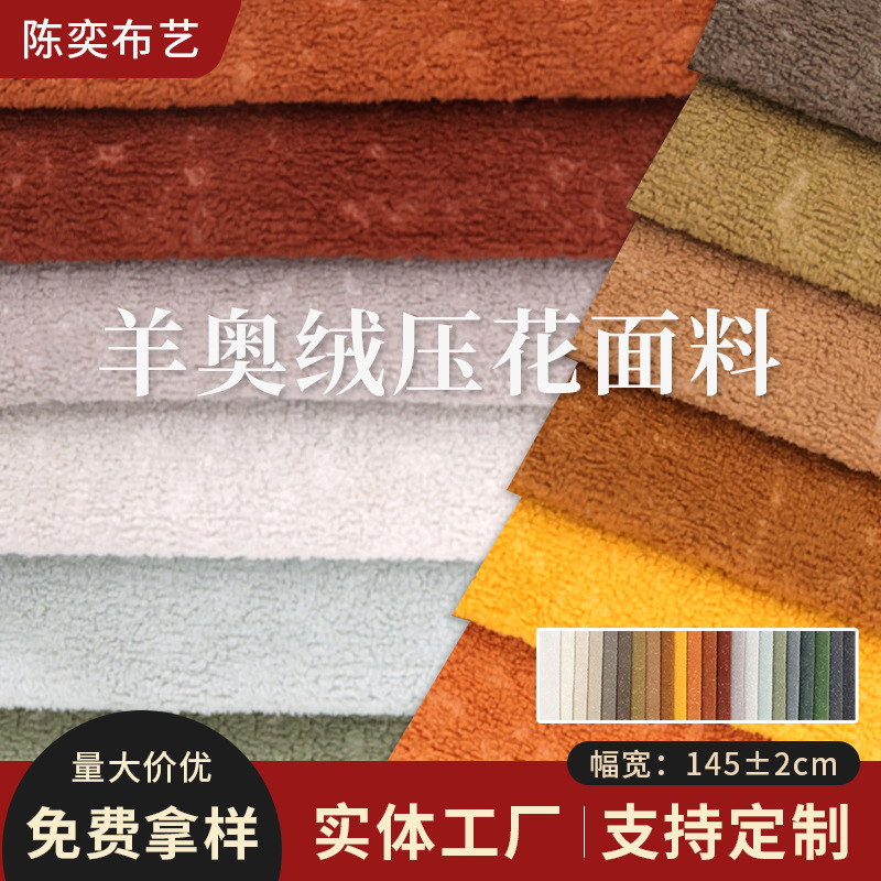 厂家新款现货供应羊奥绒压花加厚面料 酒店工凳子程沙发软床布料