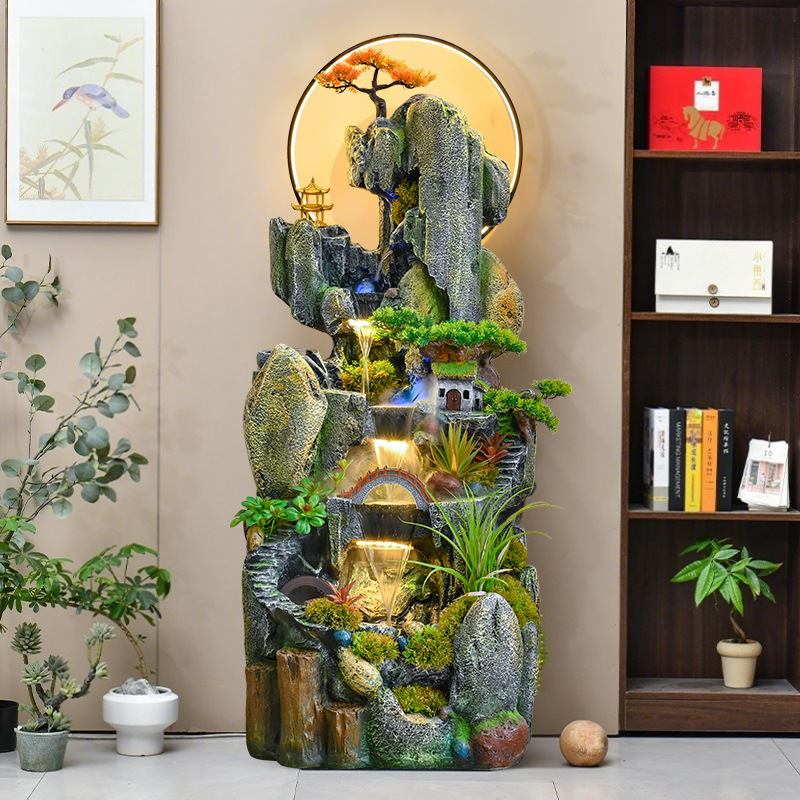 居如家新中式流水摆件餐厅景观假山家居酒店会所玄关摆放开业送礼