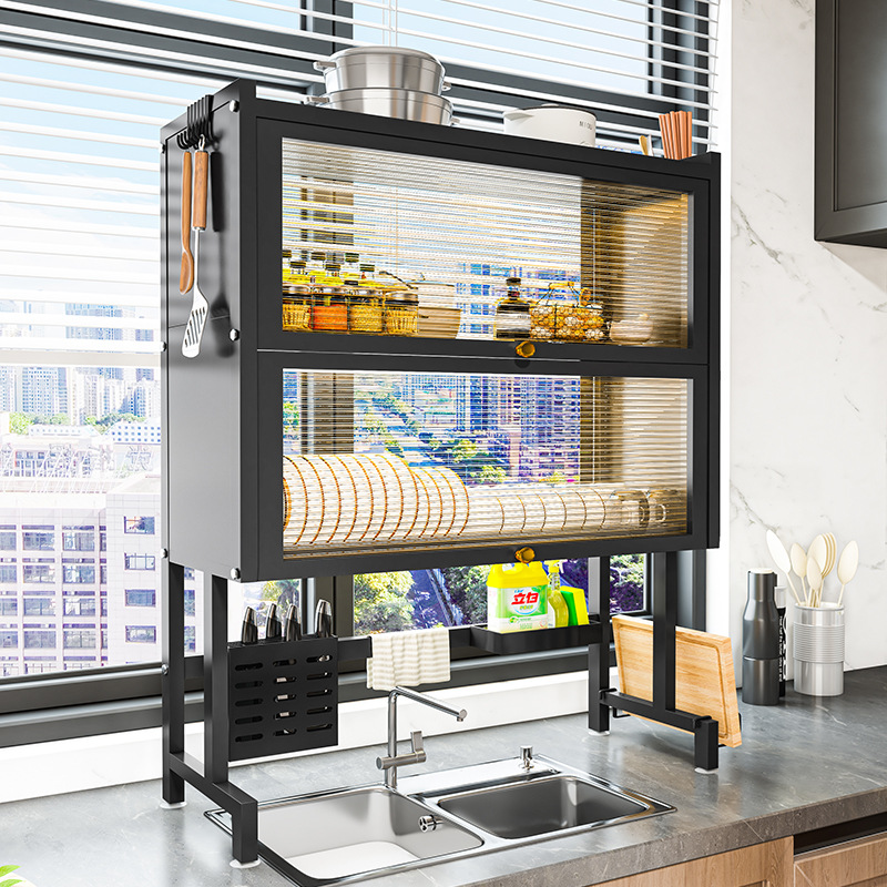 批发家用橱柜翻盖式收纳柜防尘多用途储物柜厨房落地式多层置物架