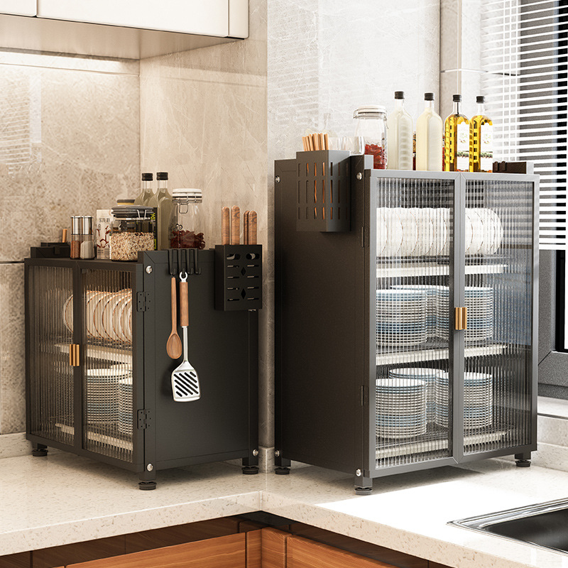 厨房碳钢置物架带门落地式收纳柜多功能碗筷盘碟储物置物柜