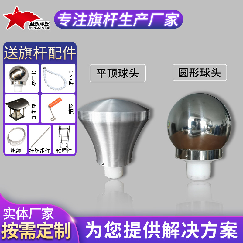 304不锈钢旗杆配件平顶球头圆形球头装饰 供应户外旗杆配件顺风球