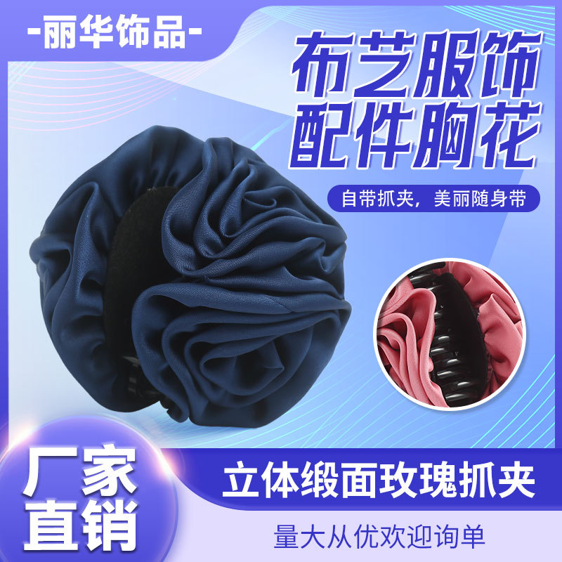 外贸春夏缎面玫瑰发夹高级感干枯玫瑰抓夹时尚通勤鲨鱼夹批发