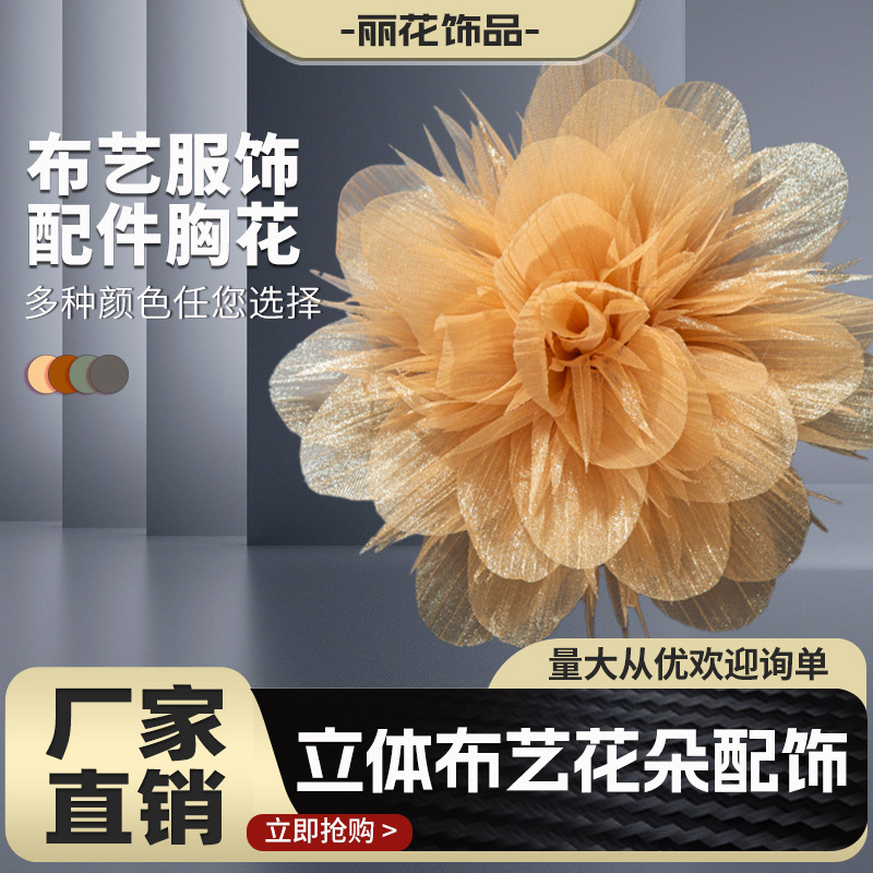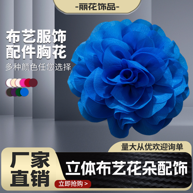 新款手工立体仿真胸花13CM雪纺头花配饰DIY欧美服装辅料厂家直销
