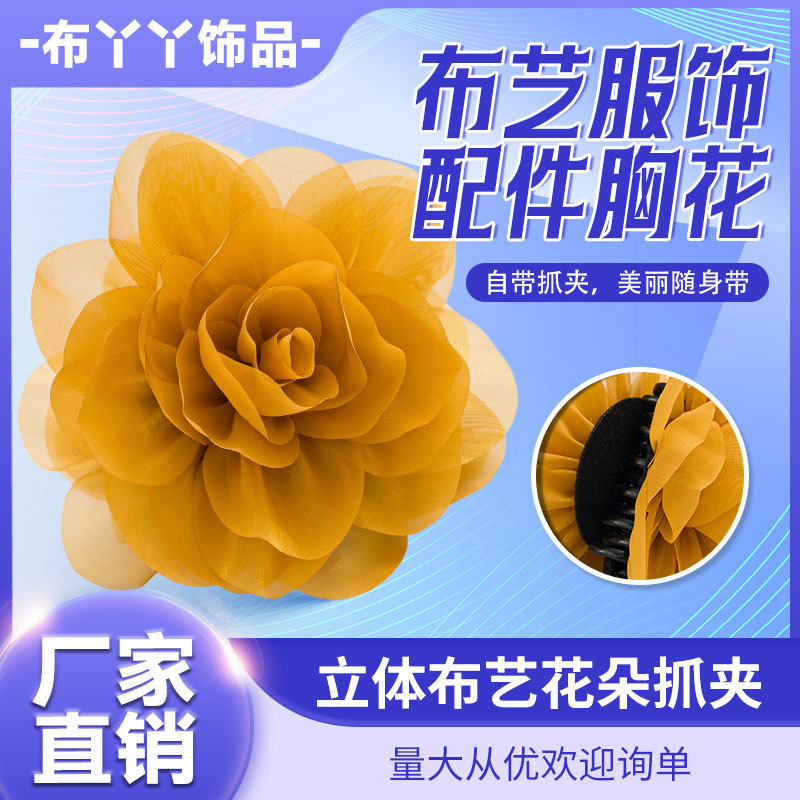 布艺diy饰品大朵花抓夹后脑勺14-15厘米菊花立体花朵批发