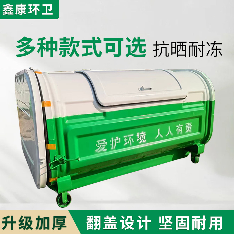 环卫保洁桶手推加厚铁桶大型市政挂车垃圾桶移动桶660L铁质垃圾桶