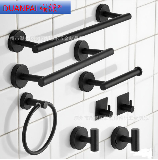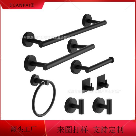 跨境不锈钢304黑色免打孔浴室挂件套装酒店用品毛巾杆毛巾环挂钩