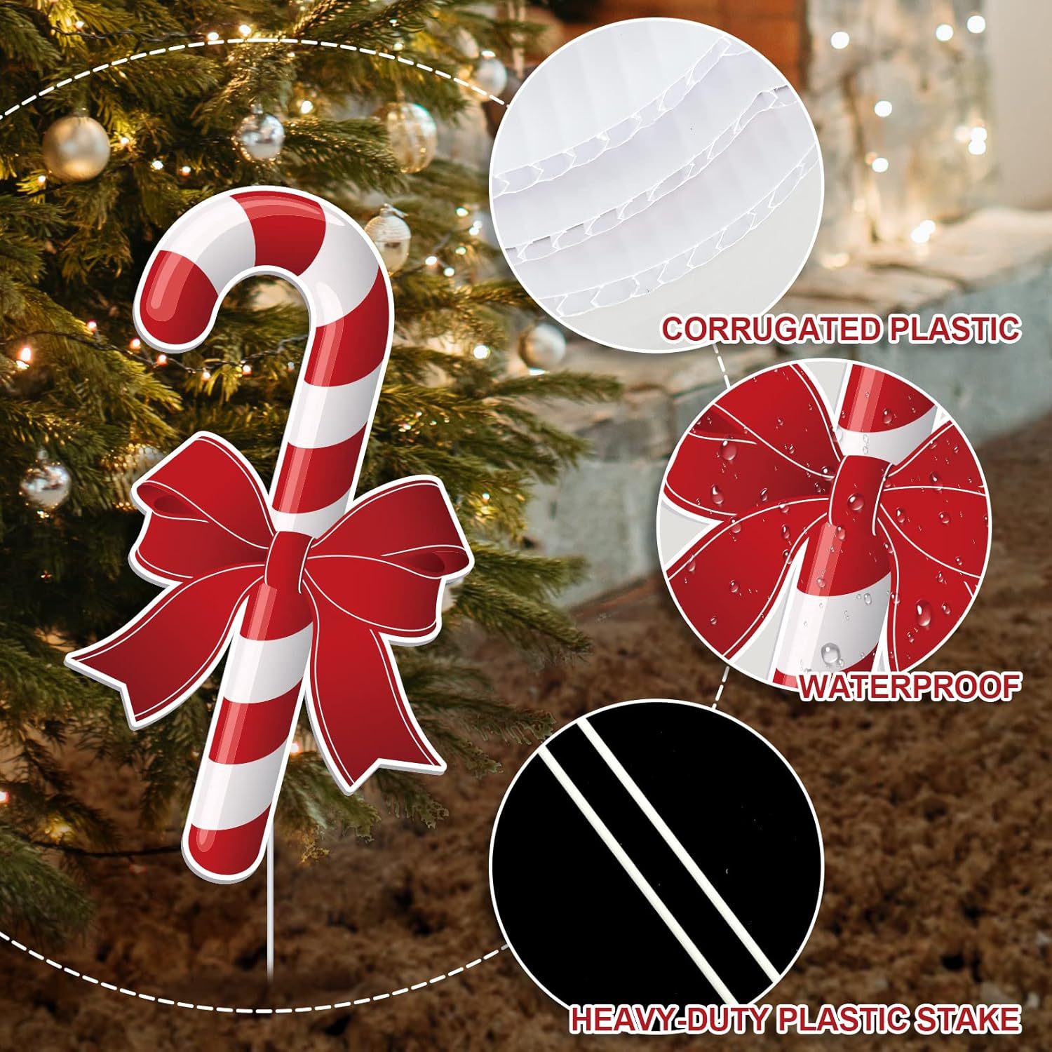 10件圣诞大号拐杖糖草坪防水白色红色条纹蝴蝶结户外标志用于圣诞
