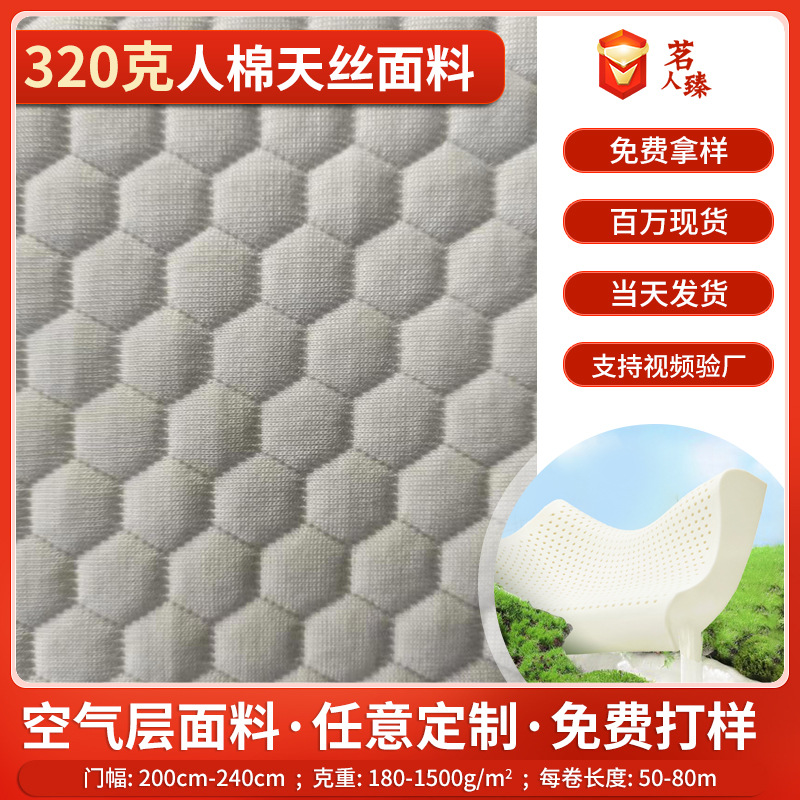 厂家现货冰丝枕头套面料 夹棉布料空气棉针织面料天丝空气层生产