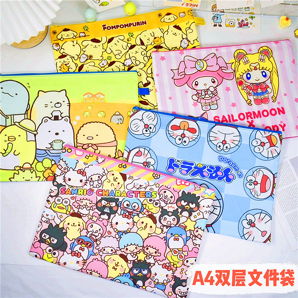 可爱卡通A5文件袋学生文具收纳袋办公用品票据资料袋拉链袋笔袋