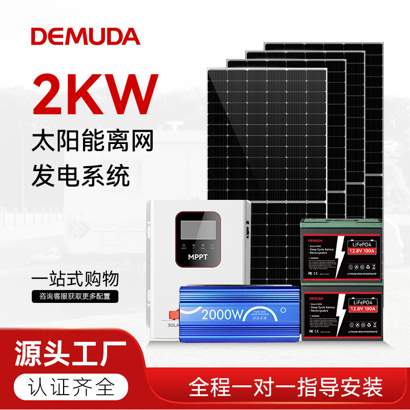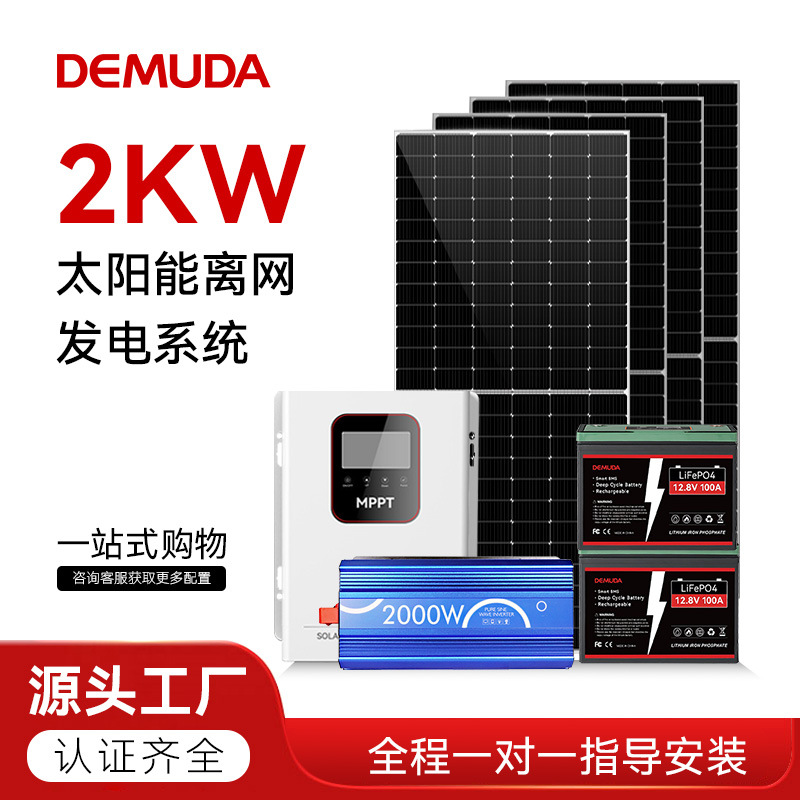 2000W离网太阳能发电系统A级电芯A级太阳能板户外光伏发电系统