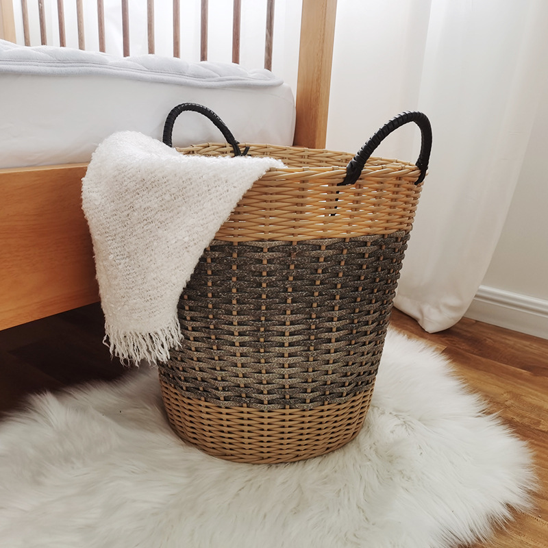 美式收纳筐复古脏衣服篮仿藤编织洗衣桶零食玩具酒店网红款收纳篮