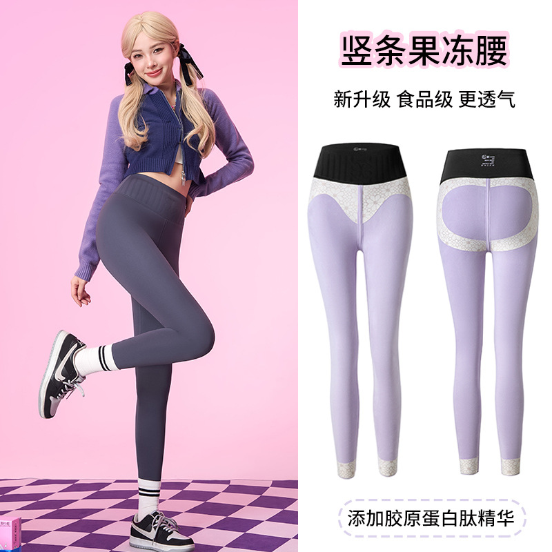 秋冬新款竖条果冻腰加绒加厚鲨鱼裤高腰收腹提臀显瘦外穿打底裤