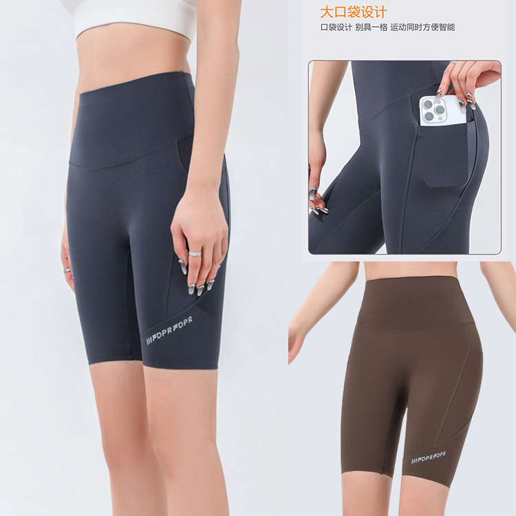 口袋五分裤短裤女夏鲨鱼裤高腰收腹提臀裤跑步运动骑行健身瑜伽裤