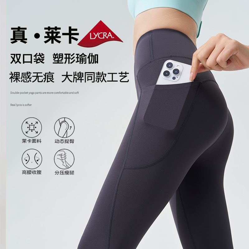 lulu瑜伽裤女九分蜜桃臀裸感高腰收腹鲨鱼裤无尴尬线口袋健身裤