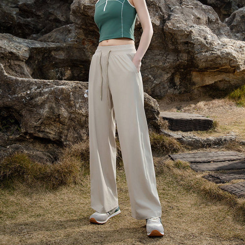 新款速干冰丝阔腿裤垂感高级感黑色薄款宽松休闲裤运动直筒防晒裤
