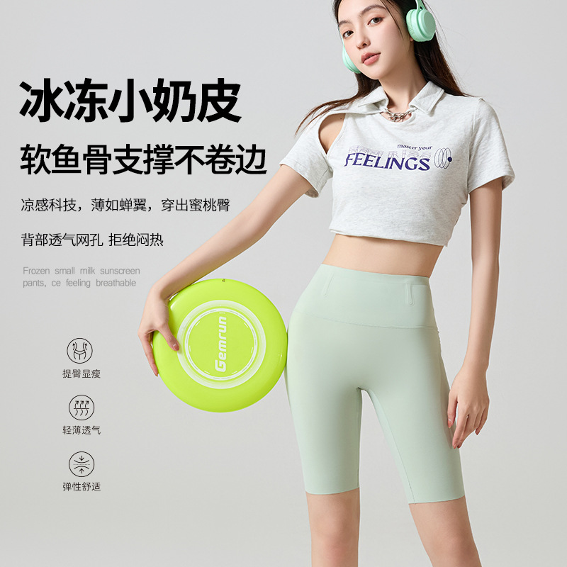 新款瑜伽裤女短裤女夏薄款五分裤高腰提臀收腹裤冰丝健身凉感短裤