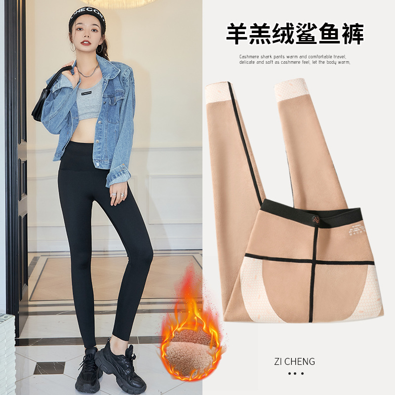 羊羔绒鲨鱼裤女外穿秋冬加绒瑜伽裤子瘦腿高腰提臀收腹打底裤弹力