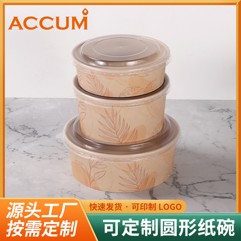 一次性竹纸加厚外卖打包盒圆形快餐盒水果沙拉商用汤碗纸碗批发