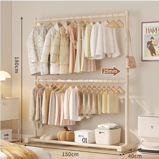 双杆落地衣架立式免打孔晾衣架衣帽架简易衣服衣架便携可移动衣架