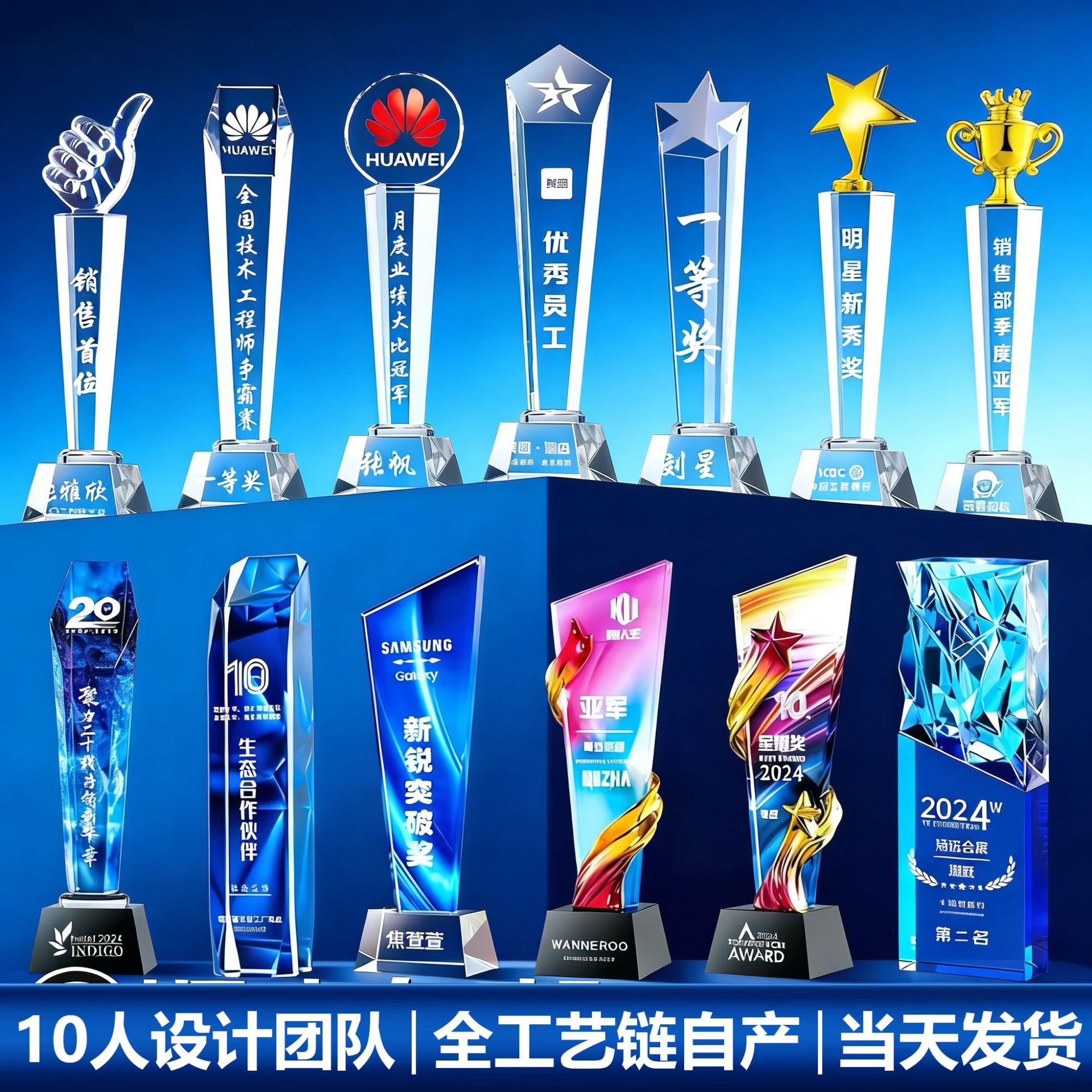 奖杯高级感水晶奖牌摆件优秀员工公司年会销售季度比赛颁奖冠亚季