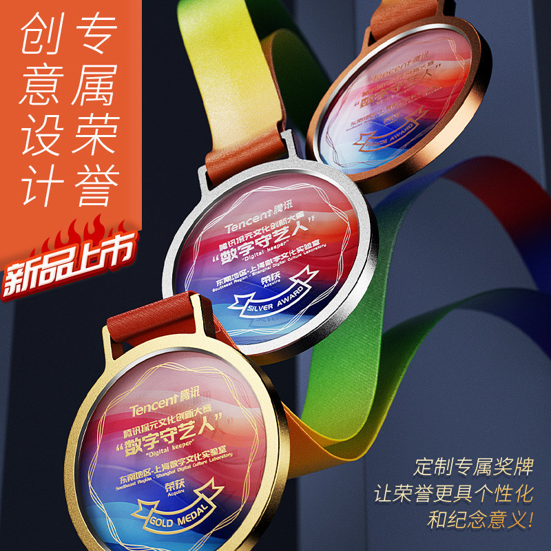 水晶奖牌马拉松运动会比赛儿童冠军金牌学生荣誉金属挂牌